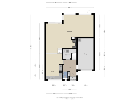 * Praktische bijkeuken van ca. 2.78 x 2.11 voorzien van aansluiting voor de wasmachine/droger.