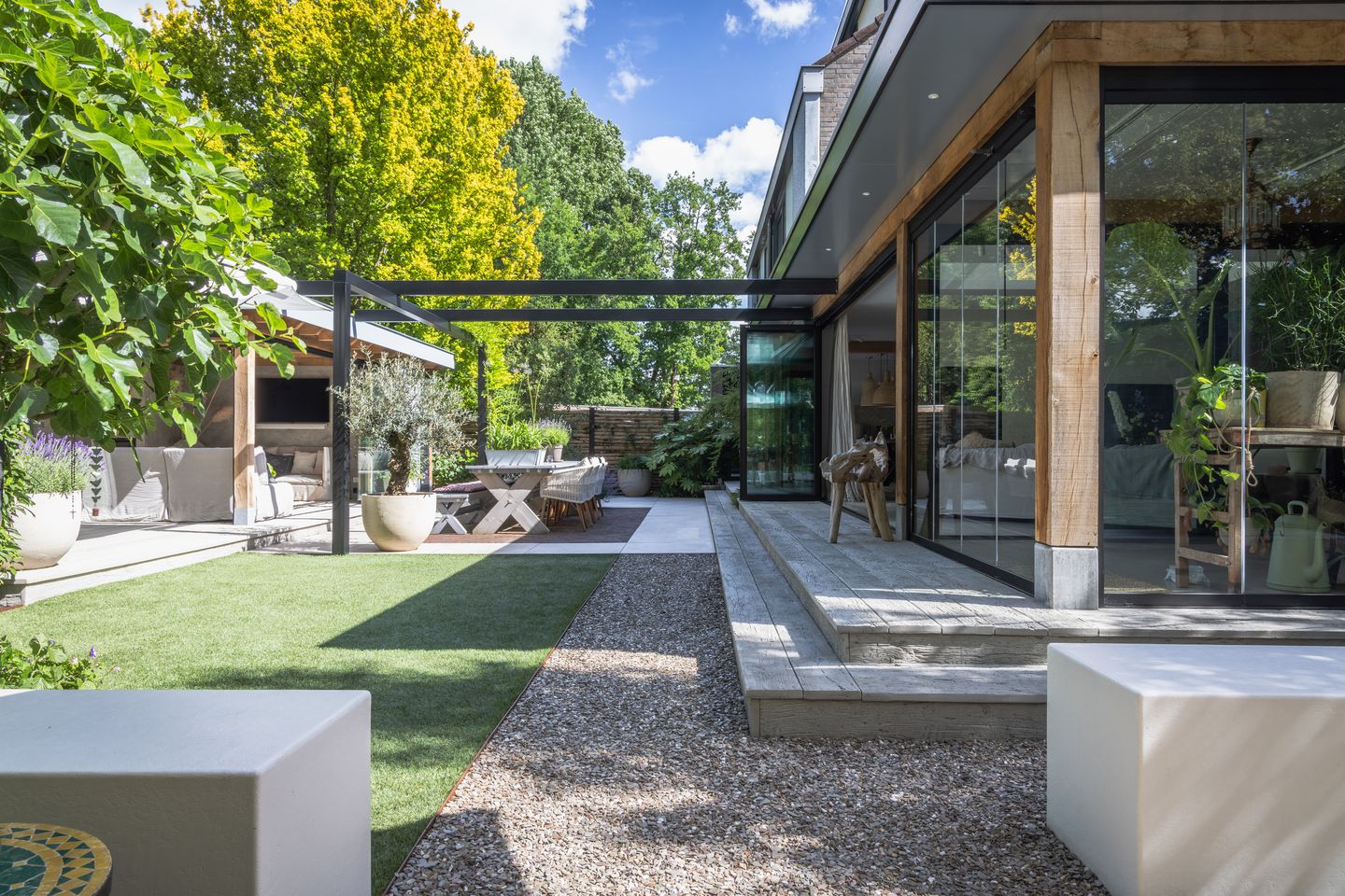 * De achtertuin high-end is aangelegd en onderhoudsvriendelijk is!