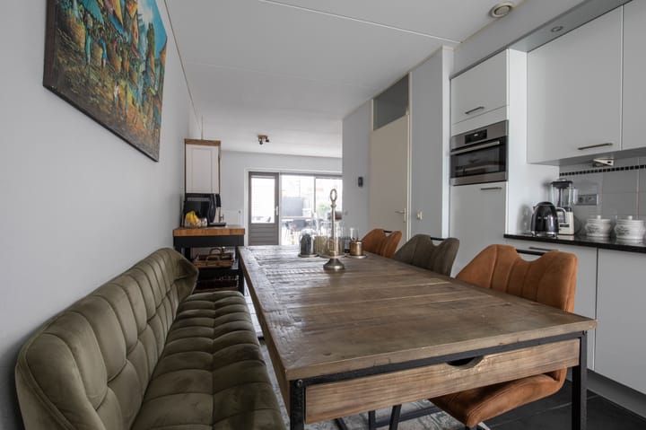 De keuken aan de voorzijde is uitgerust met diverse inbouwapparatuur, zoals een 4-pits keramische kookplaat, een afzuigschouw, een combi-oven en een vaatwasser. De koelkast is los geplaatst in de keuken. Hier is het fijn kokkerellen voor de thuiskok! Er is meer dan voldoende ruimte voor een grote eethoek om gezellig samen te eten.