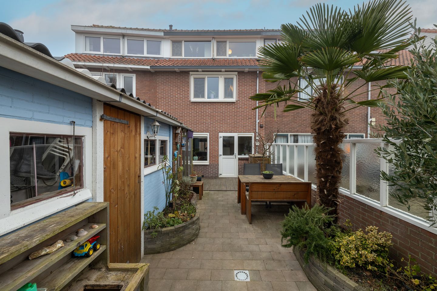 Vanuit de keuken loop je zo de diepe, zonnige achtertuin in. De tuin heeft een berging, biedt veel privacy en heeft een praktische achterom.