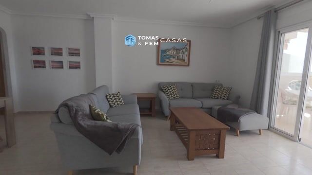 Bij binnenkomst valt meteen de royale leefruimte op. De woonkamer is licht, open en aangenaam van formaat en staat via grote schuifpuien in directe verbinding met het balkon. Daardoor wordt het buitengevoel als vanzelf onderdeel van het wonen. Overdag profiteert u hier van veel natuurlijk licht en aan het einde van de dag van een sfeervol uitzicht wanneer de zon zakt boven de Mar Menor. Het balkon vormt een volwaardige verlenging van de woonkamer en is een heerlijke plek om rustig te ontbijten, te dineren of simpelweg te genieten van de omgeving.