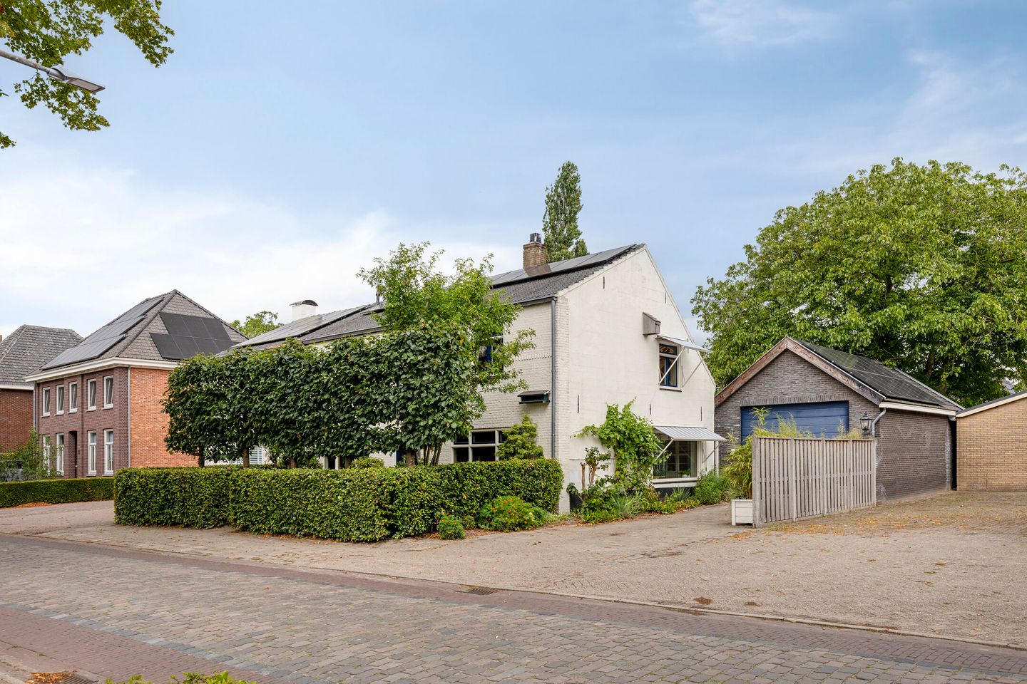 De oprit leidt naar de in 2015 nieuw gebouwde vrijstaande garage (volledig geïsoleerd, alsmede dubbele beglazing) van ca. 50 m² met twee extra grote elektrische roldeuren en voorzien van elektra en een bergzolder. Achter de garage staat de grondwaterpomp.