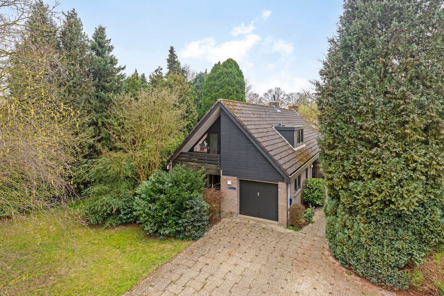 De ruime oprit voor de garage is bestraat en geeft de mogelijkheid voor het parkeren van meerdere auto’s op eigen terrein.