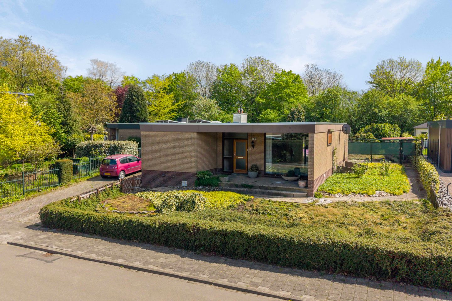 Fraai aangelegde voortuin met royale oprit.