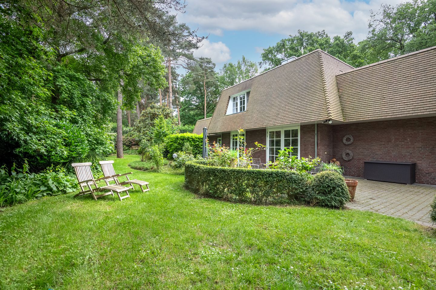 Rondom woonhuis gelegen royale, parkachtige tuin met uitzicht op de Brunssumerheide. De tuin is geheel omsloten, beschikt over diverse (overdekte) terrassen, veel privacy, een dubbele poort t.b.v. afvoer groen en eventueel een bouwperceel.