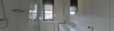 De volledig betegelde en verzorgde badkamer beschikt over een douche met douchedeuren, een tweede toilet, wastafel met modern wit hoogglans badmeubel, radiator en een raam voor ventilatie en daglicht. Daarnaast bevindt zich op deze verdieping een separate cv-ruimte met de combiketel (Remeha HR, CW4, bouwjaar 2021, eigendom) en de mechanische ventilatie.