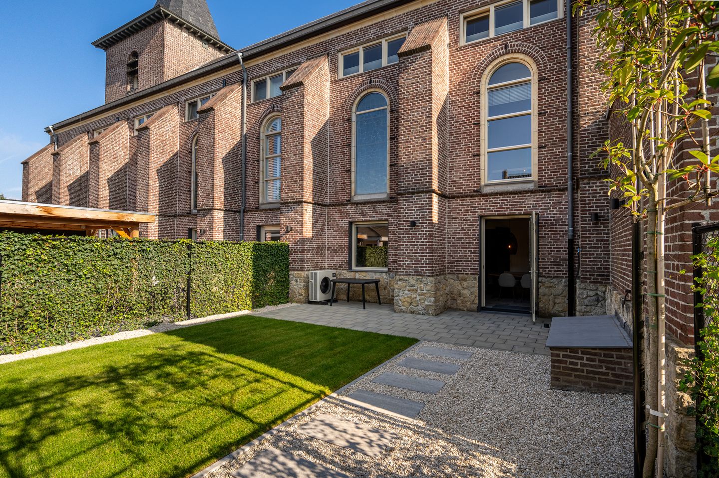 Vanuit de centrale hal betreedt u deze fraaie “kerkwoning” via uw eigen voordeur.