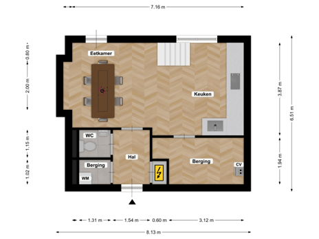 - 72 m² (9,40 meter diep en 7,70 meter breed)