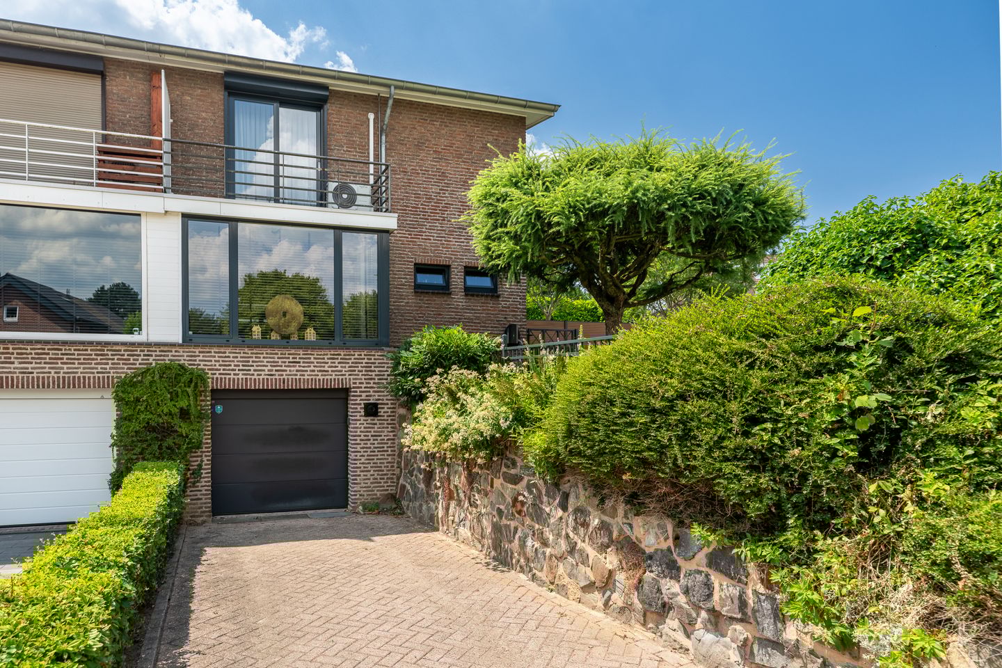 Grenzend aan de keuken ligt de in 2020 gerealiseerde aanbouw, volledig omgeven door glas. Deze lichte en ruimtelijke kamer is voorzien van airconditioning, automatische sunscreens, en vormt een prachtige verbinding met de tuin. Dankzij de openslaande deuren vanuit zowel de keuken als de aanbouw staat binnen hier direct in contact met buiten.