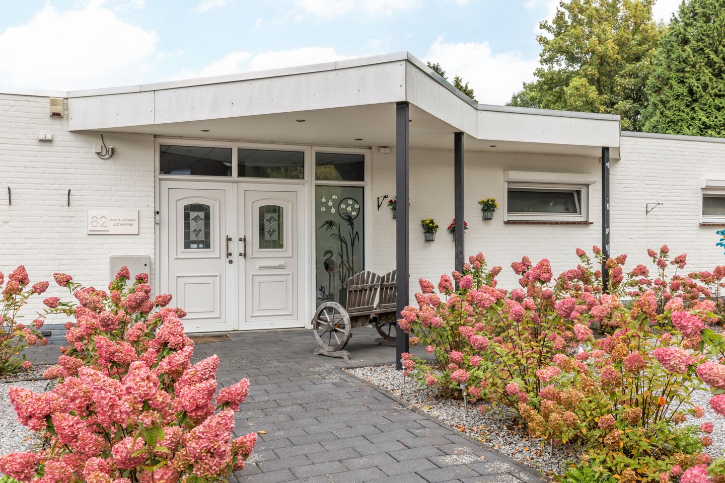 De woning beschikt over een riante living van circa 70 m², twee slaapkamers, een moderne keuken en badkamer (beide vernieuwd in 2023), een dubbele garage en een fraai aangelegde en onderhoudsvriendelijke zonnige tuin met veel privacy.