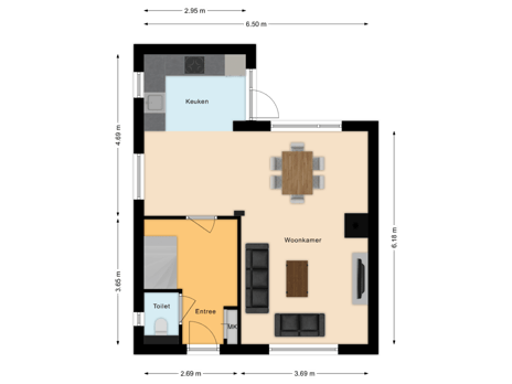 Via de hal/entree met trapopgang bereikt u de modern afgewerkte toiletruimte met wandcloset en de meterkast. Vanuit de hal heeft u toegang tot de sfeervolle L-vormige woonkamer met open keuken aan de achterzijde. De woonkamer is voorzien van een houtkachel en airconditioning en staat in directe verbinding met de tuin.