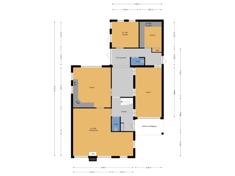 Tweede royale ontvangsthal met eigen entree, garderobe, toilet en deur naar de achtertuin. Aan de achterzijde van de woning bevindt zich nog een dichte keuken en een kamer met deur naar de achtertuin.