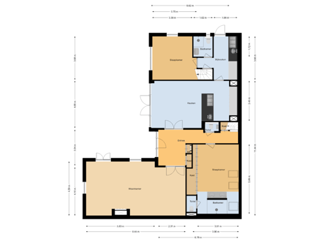 - 109 m² (7,25 meter diep en 15,00 meter breed)