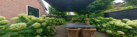 De prachtig aangelegde tuin is een oase van rust en groen. Volledig omsloten met een stijlvolle poort, groene haag en keurig onderhouden schutting biedt deze buitenruimte volop privacy en geborgenheid. De tuin is slim ingedeeld met meerdere terrassen, verzorgde borders met Annabel hortensia’s en karaktervolle plataanbomen die zorgen voor een natuurlijke verdeling tussen zon en schaduw.
