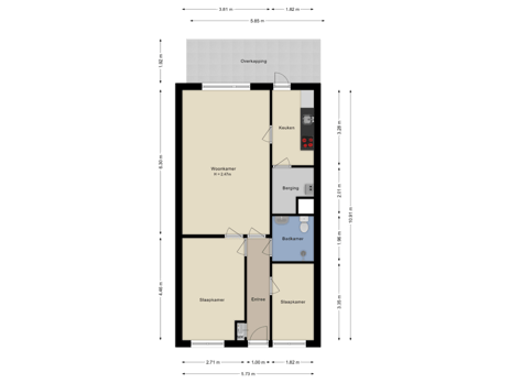 - 11 m² (1,92 meter diep en 5,85 meter breed)