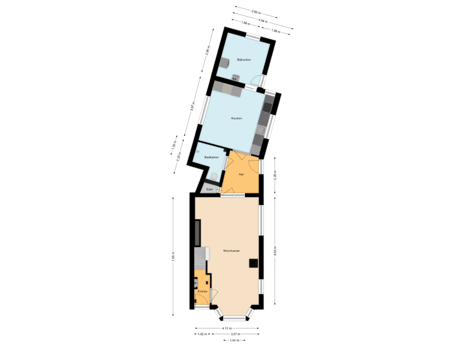 Vanuit de keuken komt men in de bijkeuken met combiketel (2022), meterkast, omvormer van de zonnepanelen(2021), wasmachine-/drogeraansluiting en een kastruimte. Toegang tot de achtertuin. Op het dak van de keuken en bijkeuken samen bevinden zich 15 zonnepanelen (2021).