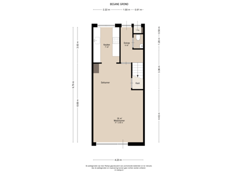 - 41 m² (9,00 meter diep en 4,50 meter breed)