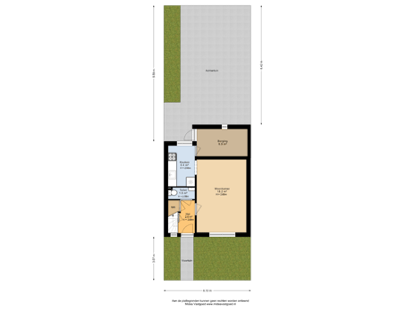 - 59 m² (9,59 meter diep en 6,13 meter breed)