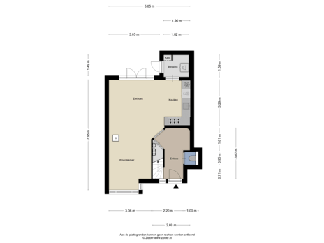 - 47 m² (8,00 meter diep en 5,85 meter breed)