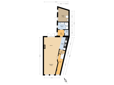 - 38 m² (9,34 meter diep en 5,15 meter breed)