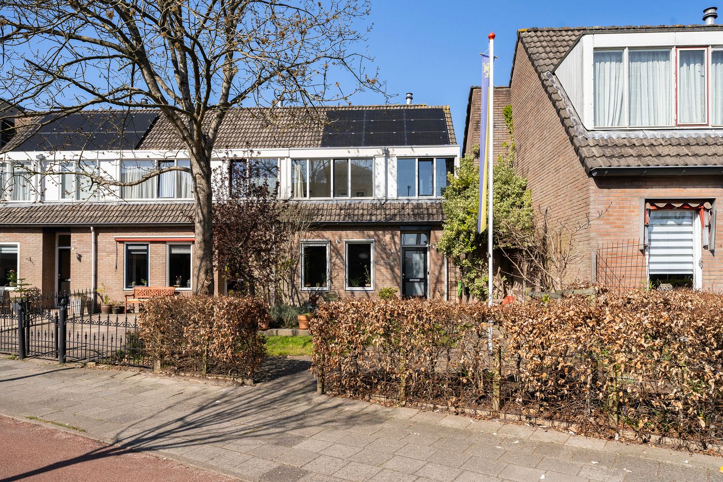 Je betreedt de woning via de diepe, groene voortuin (bijna 12 meter op het diepste punt) met sfeervolle overkapte voordeur. Binnen kom je in de lichte entree, die toegang biedt tot het toilet, de trapopgang naar de eerste verdieping en de woonkamer.