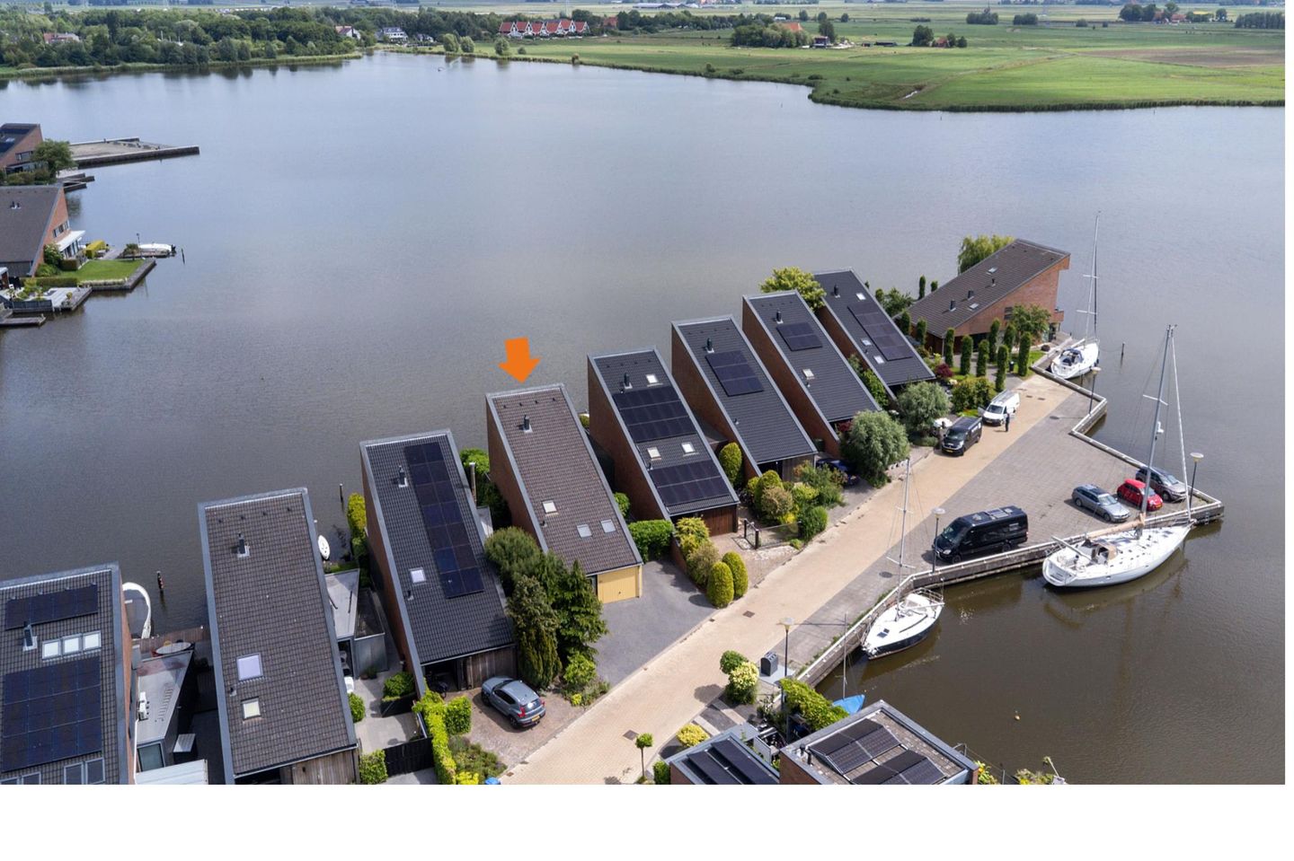 Hier gaat het om pure woonkwaliteit. Om wakker worden met het zachte licht dat over het water glijdt. Om momenten waarop de lucht goud kleurt en je in alle rust uitkijkt over de uitgestrekte rietkragen en het kabbelende meer. Om spontaan een duik nemen of een tocht over Friese wateren maken, elke dag voelt aan als vakantie.