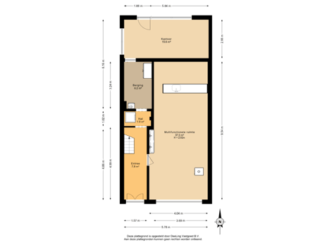 - 42 m² (6,60 meter diep en 6,38 meter breed)