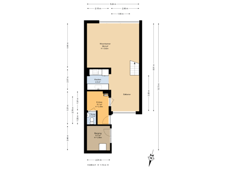 - 56 m² (10,60 meter diep en 5,30 meter breed)