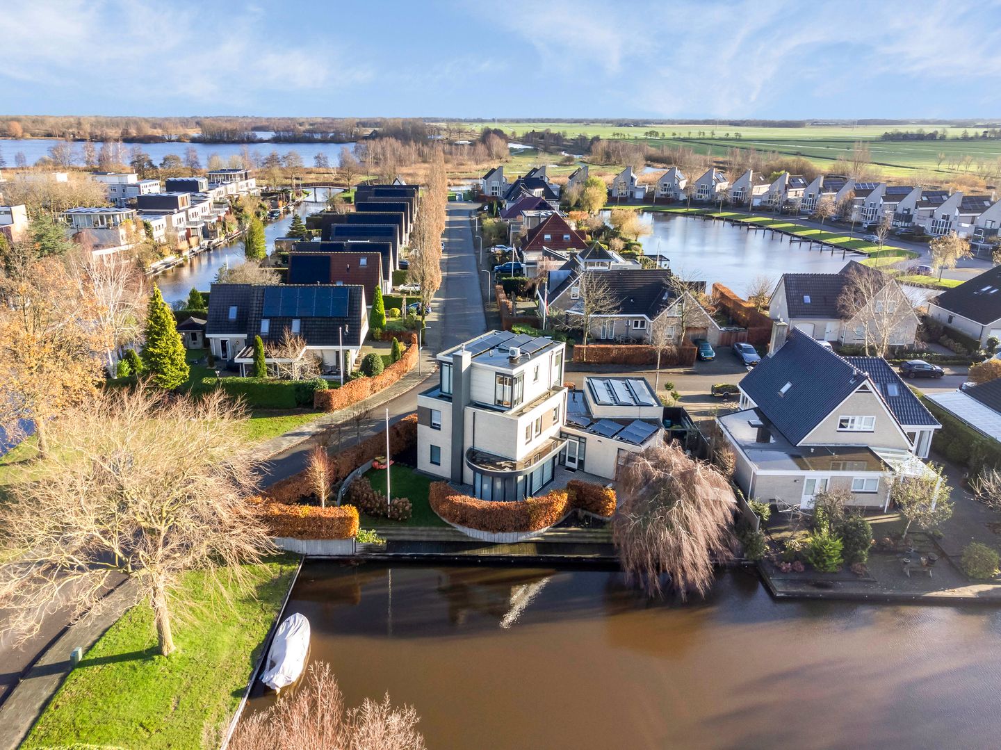 Herweystate 2 is gelegen in een rustige en groene woonwijk in Leeuwarden, met uitstekende verbindingen naar het stadscentrum en de omliggende natuurgebieden. De ligging aan open vaarwater maakt deze villa een droom voor watersportliefhebbers. Ook scholen, winkels en andere voorzieningen zijn op korte afstand bereikbaar, wat deze locatie ideaal maakt voor gezinnen en professionals die een balans zoeken tussen rust en stedelijke gemakken.