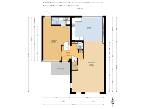 - 88 m² (8,00 meter diep en 11,00 meter breed)