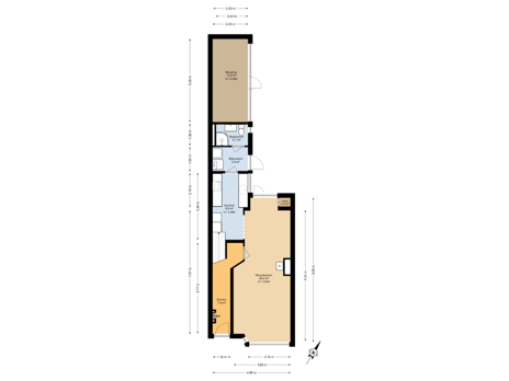 - 56 m² (14,13 meter diep en 5,55 meter breed)