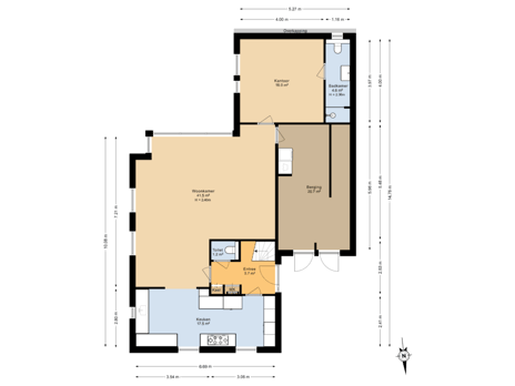 - 33 m² (4,35 meter diep en 7,64 meter breed)