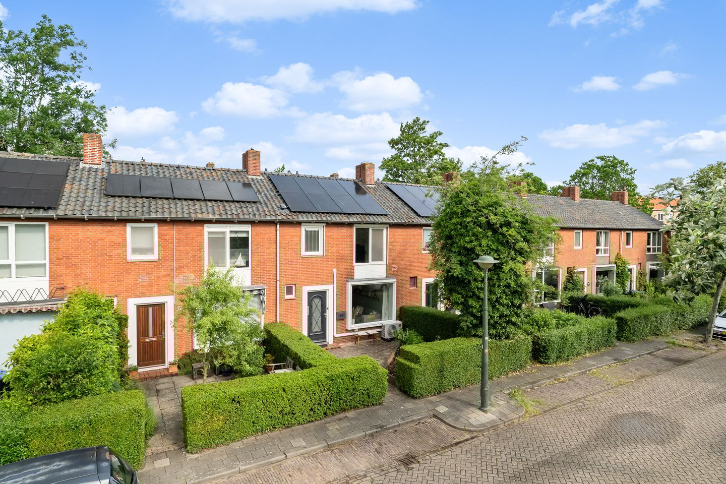 Behalve de looks, heeft de woning ook de functionaliteiten die je anno 2025 nodig hebt. Zo is de woning grotendeels voorzien van kunststof kozijnen met HR ++ beglazing, liggen er 8 zonnepanelen op het dak én kun je koelen en verwarmen met de luxe airco's op beide verdiepingen (geplaatst in 2024).