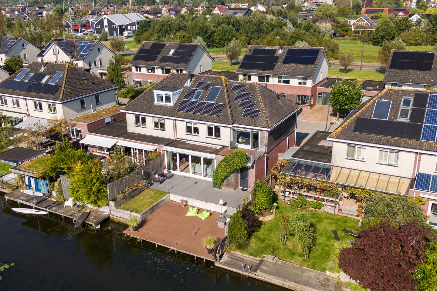De royale woonkamer van maar liefst 47 m2 heeft een aanbouw en een grote schuifpui naar de tuin aan het water, gelegen op het zuiden. De achtertuin is voorzien van een fraai terras en een grote vlonder (van kunststof). Hier kun je ook heel goed een boot(je) of sloep aanleggen en zo het openbare vaarwater (staande mastroute) opvaren. De keuken bevindt zich aan de straatzijde en is ruim van opzet en voorzien van alle gangbare inbouwapparatuur. De voormalige garage is omgebouwd tot slaapkamer met toegang tot de badkamer met inloopdouche, 2e toilet en vaste wastafel. De ruime inpandige berging van 14m2 is vanuit de tuin bereikbaar.