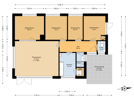 De woning is gemeten op basis van de Branche Brede Meetinstructie (BBMI). Deze meetinstructie is bedoeld om een meer eenduidige manier van meten toe te passen voor het geven van een indicatie van de gebruiksoppervlakte. De Meetinstructie sluit verschillen in meetuitkomsten niet volledig uit, door bijvoorbeeld interpretatieverschillen, afrondingen of beperkingen bij het uitvoeren van de meting.