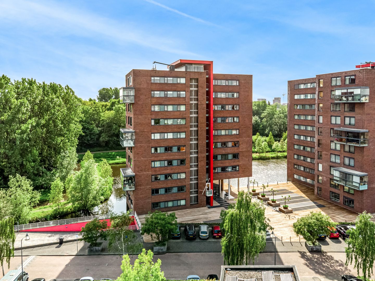 Entree, royale hal met toegang tot de verschillende vertrekken. In de hal bevinden zich de meterkast, een toilet met fontein, separate was/bergruimte met de mechanische ventilatie met warmteterugwinning. De ruime en zeer lichte woonkamer is voorzien van veel raampartijen en verschaft u toegang tot het ruime en geheel met glas afsluitbare balkon (ca. 10m2 op het zuidwesten). Het uitzicht vanuit het appartement betreft veelal groen en water.