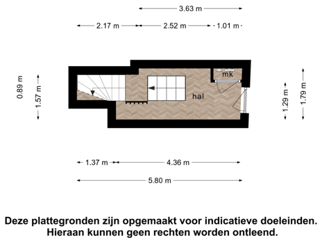 Via de straatkant betreedt u de woning en komt u in een ruime hal met meterkast en voldoende bergruimte. Vervolgens neemt u de trap naar de bovenwoning en bereikt u de overloop. Deze overloop biedt genoeg ruimte voor een opbergmeubel. Vanuit hier heeft u toegang tot de toiletruimte en de trap naar de eerste verdieping. De overloop geeft tevens toegang tot de woonkamer.