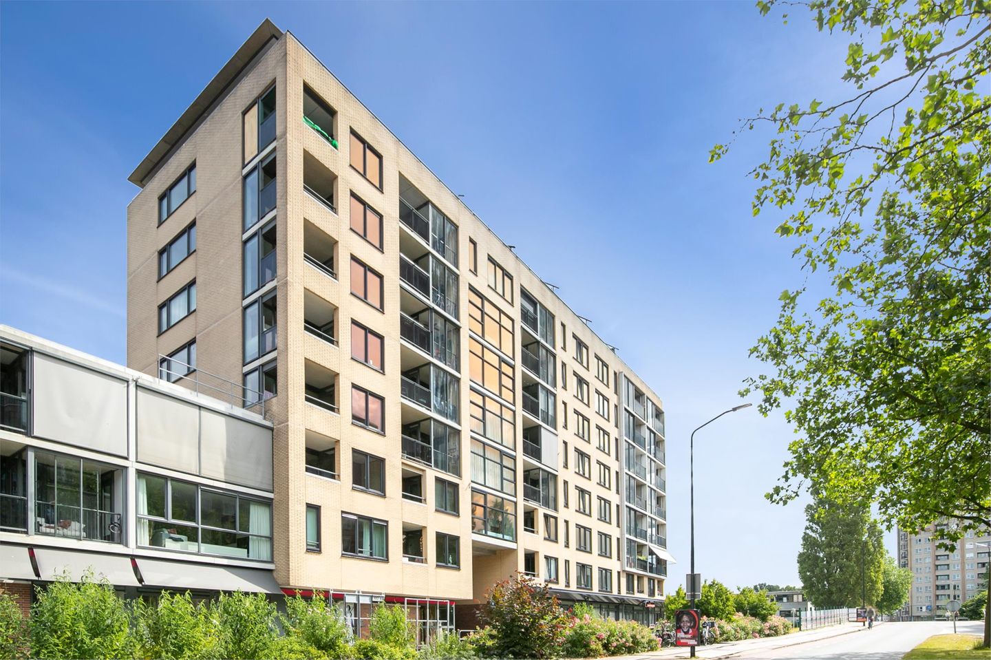 De woning is op de derde etage gelegen van een zeer goed onderhouden complex waarbij alle kozijnen en ramen aan de buitenzijde recent (Juni 2023) zijn vervangen. In de woning zelf merk je niets van het verkeer aan de voorzijde en kan er vanwege het voordelig energielabel (A) zeer comfortabel gewoond worden. De hal van de woning is middels lift of trap te bereiken en geeft aan alle ruimten toegang waaronder het separate toilet en de technische ruimte met was- droogmachine opstelmogelijkheid. De woonkamer is licht en ruim van opzet met meer dan voldoende ruimte voor een grote zithoek, eethoek en ruimte voor een werkplek. Tevens komt de woonkamer uit in de loggia. De keuken is volledig uitgerust met 4-pick gaskookplaat, vaatwasmachine, oven en koel- vriescombinatie. De hoofdslaapkamer geeft toegang tot het zonnige balkon op het Zuiden en de tweede slaapkamer is met grote diepe vaste kledingkast met 3 bedden ( 200cm*90cm ). Desgewenst is er een bureau in dezelfde stijl voorhanden die teruggeplaatst kan worden. In de kelder is een fietsenberging en extra ruimte voorhanden met eigen stopcontact ( erg handig voor klussers ) en extra handig om spullen kwijt te hebben.