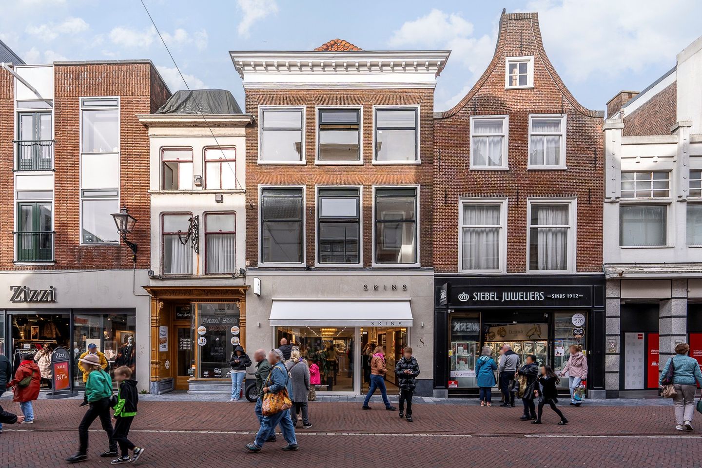 Via de gezamenlijke entree en de trap bereikt u de woning op de eerste woonverdieping. Hier komt u binnen in een ruime berging die toegang biedt tot de dichte keuken, voorzien van diverse inbouwapparatuur. Via de keuken bereikt u de hal, waar zich een apart toilet bevindt en die toegang biedt tot de lichte en royale woonkamer. Grote ramen zorgen voor veel natuurlijk licht en bieden een prachtig uitzicht over de historische binnenstad. De woonkamer heeft hoge plafonds en sfeervolle details die bijdragen aan de authentieke uitstraling van de woning.