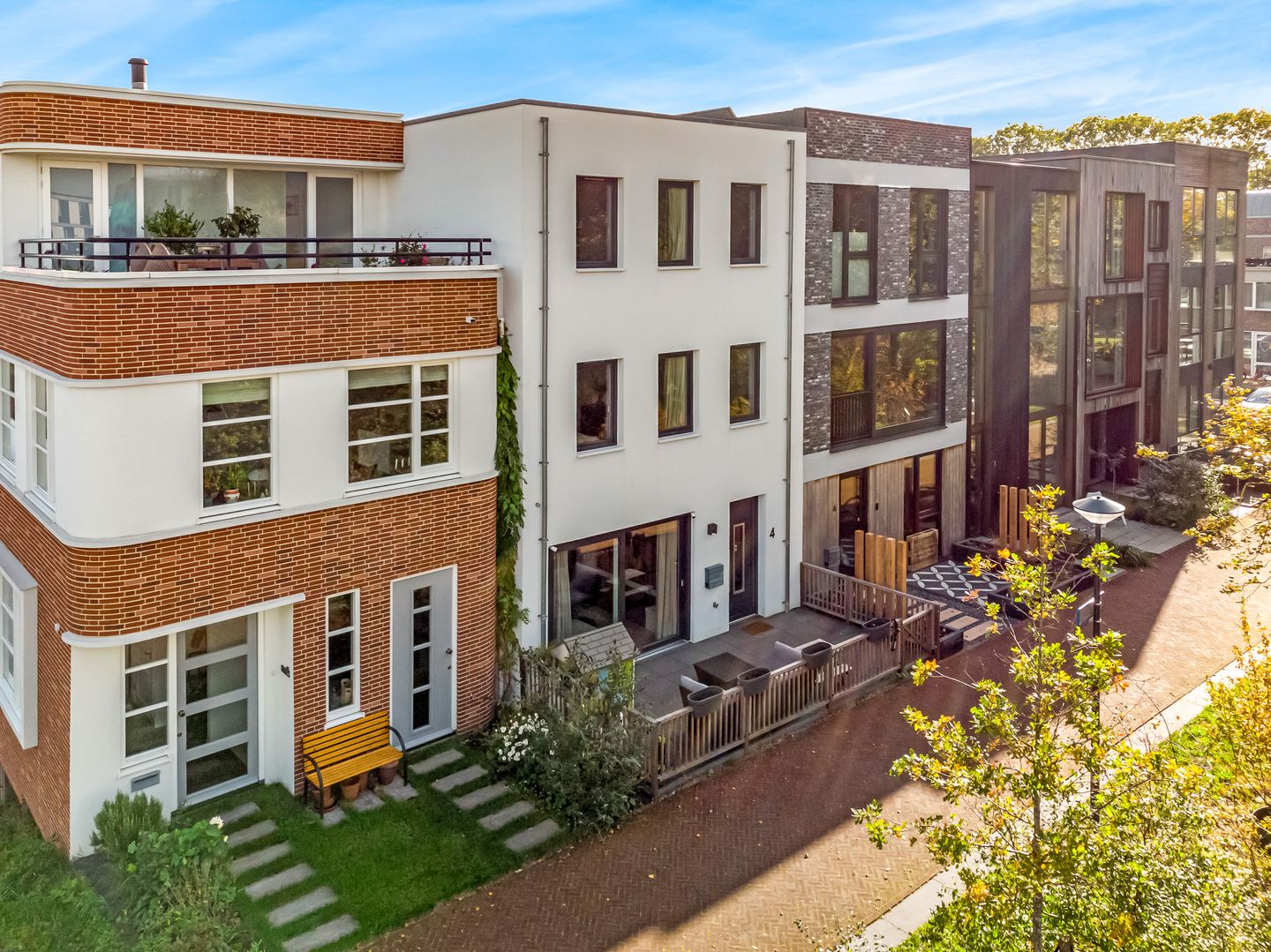 ‘Onder architectuur gebouwde, zeer luxe geschakelde stadsvilla uit 2020 in een bijzonder zelfbouwplan op een geweldige locatie in Leiden’