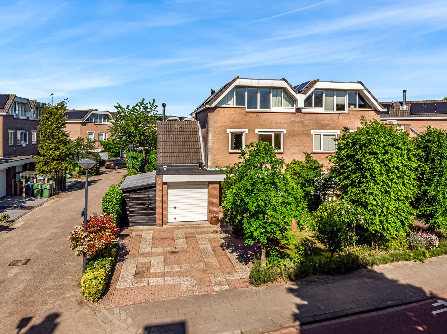 Doordat dit een hoekhuis betreft beschikt het over een heerlijke voor-, zij- en zeer ruime achtertuin. De achtertuin is op het zuidwesten gericht en voorzien van veel groen (o.a. fruitbomen) en een gezellige veranda. Aan de zijkant van de woning is nog een praktische houten schuur gebouwd waar de fietsen kunnen worden gestald zodat de garage vrij is voor extra bergruimte.