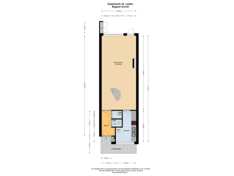- 45 m² (10,00 meter diep en 4,50 meter breed)