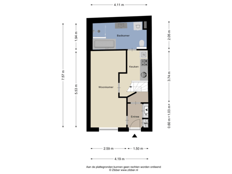 - 25 m² (7,20 meter diep en 3,43 meter breed)
