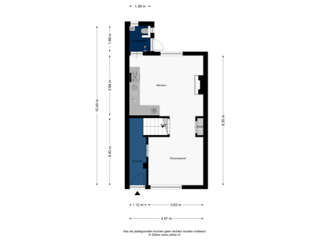 - 6 m² (2,00 meter diep en 3,00 meter breed)