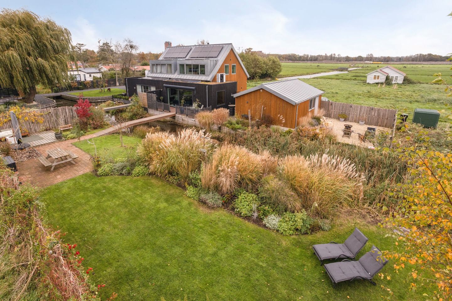 De woning ligt op een idyllische plek waar natuur en comfort elkaar ontmoeten. De fraai aangelegde, professioneel ontworpen tuin op het zuidwesten biedt een weids uitzicht over het water en de omliggende weilanden. De tuin is voorzien van een natuurlijke oever waar (water)vogels zich graag laten zien, en een charmante pluktuin waar eigen bloemen of kruiden kunnen worden gekweekt. Regelmatige bezoekers zijn ijsvogels, fazanten en zelfs vossen, wat bijdraagt aan de bijzondere sfeer van deze locatie. Het grote hardhouten terras vormt een heerlijke plek om te ontspannen of te dineren aan het water. Dankzij het extra aangekochte perceel is de tuin uitzonderlijk royaal en biedt deze volop mogelijkheden voor tuinliefhebbers en buitenleven. De ruimte en ligging maken het mogelijk om meerdere zitjes te creëren, zodat op elk moment van de dag van de zon, de rust of het uitzicht genoten kan worden.