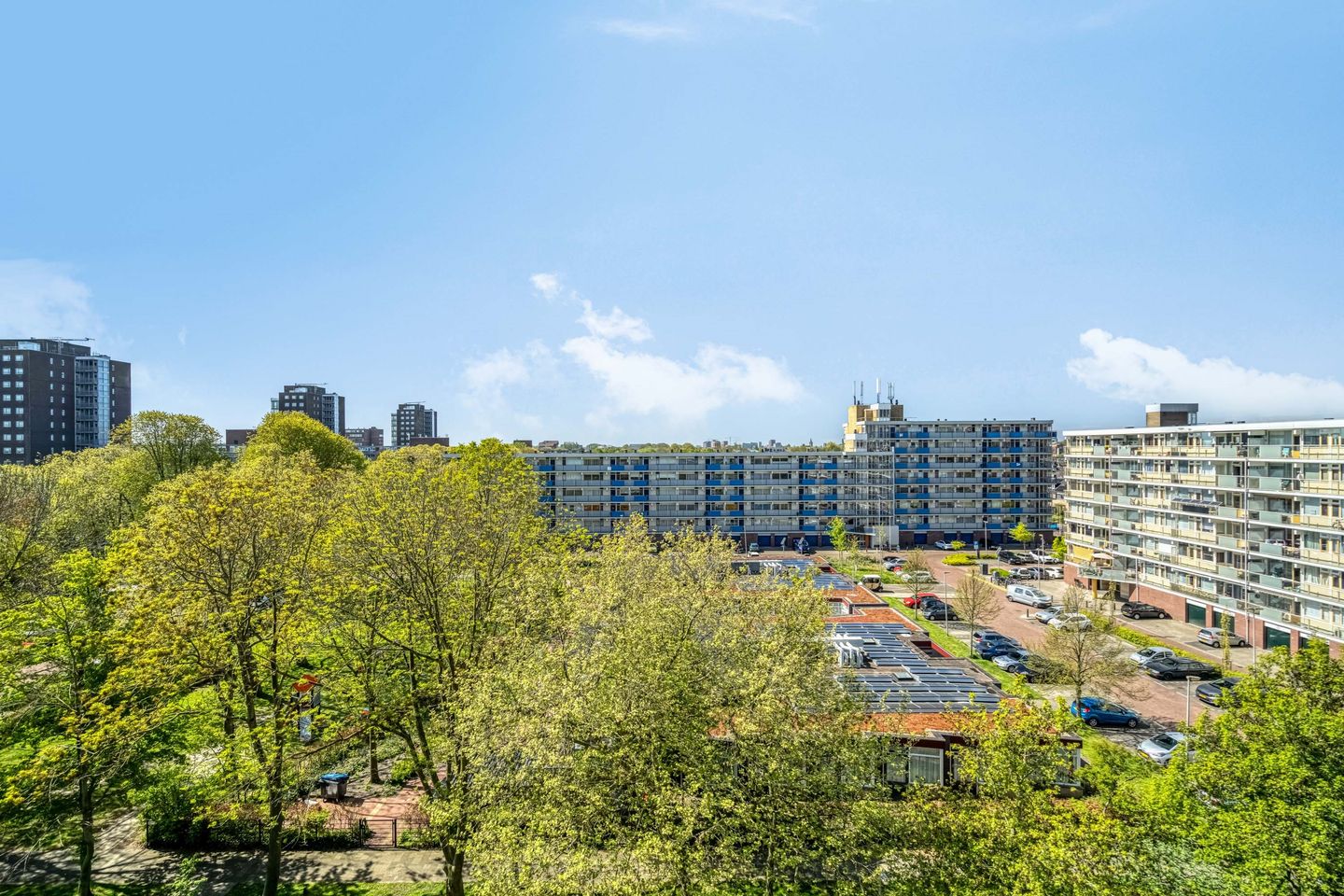 Aan de achterzijde van het appartement bevinden zich twee fijne slaapkamers. Dankzij de aanwezige screens blijven deze ruimtes ook tijdens warme zomerdagen aangenaam koel. De ouderslaapkamer ligt aan de galerijzijde en biedt volop ruimte en rust. Net als de rest van de woning zijn ook deze kamers keurig afgewerkt.