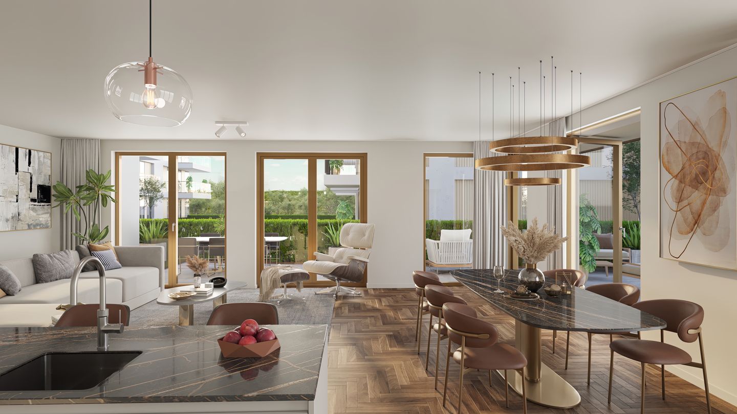 Wie kiest voor Triadome kiest voor luxe appartementen en penthouses. Gunstige ligging op de zon, los van het gas, ruimte voor groen en water, gedeelde openbare ruimte en een half verdiepte parkeergarage die ervoor zorgt dat de geparkeerde auto’s uit het zicht blijven.