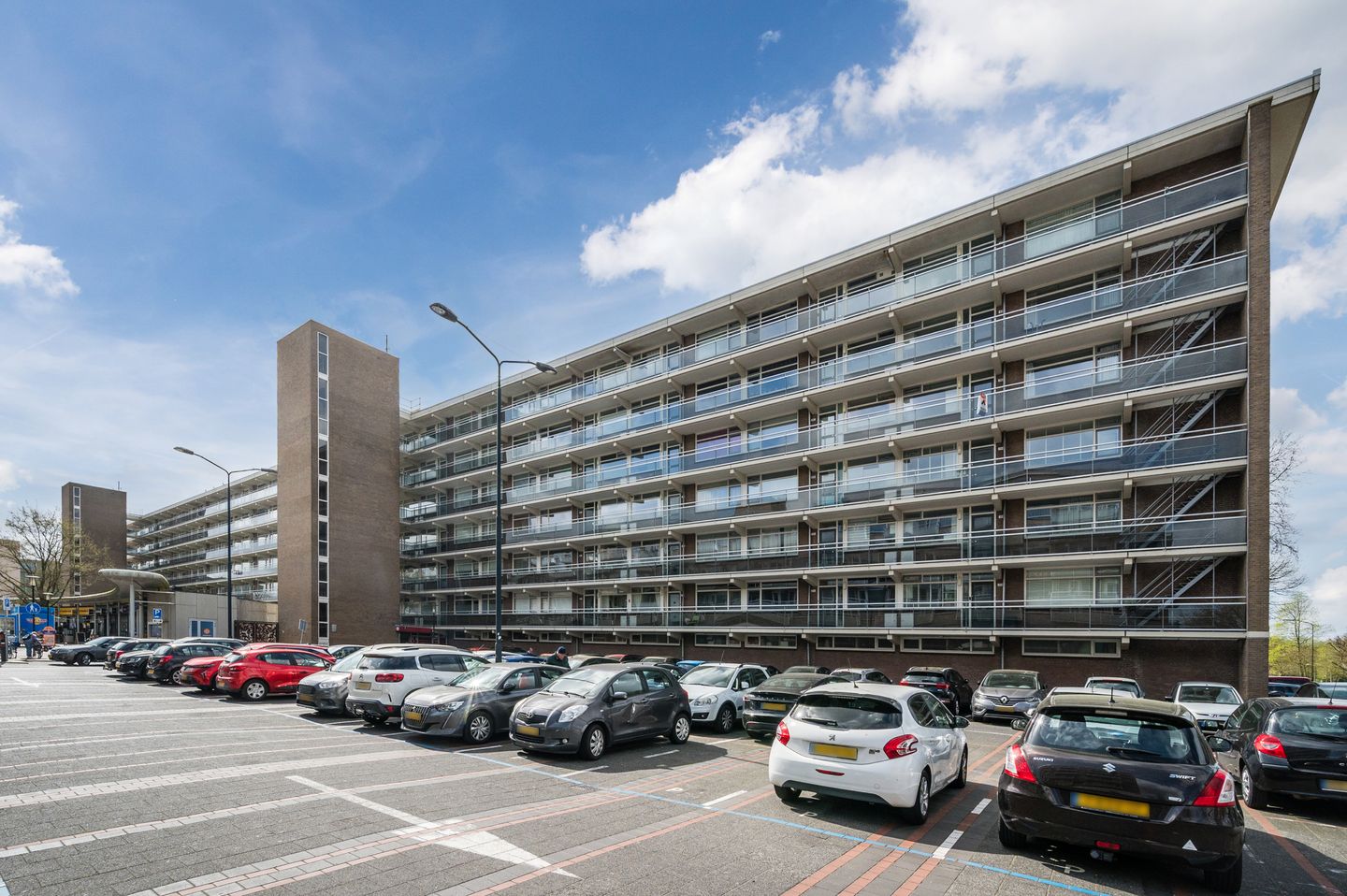 Via de galerij op de 5e verdieping bereikt u het ruime appartement van 114 m2.