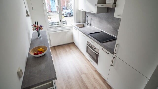 De woonkamer is ruim en licht door de grote raampartijen aan de achterzijde. Er is voldoende plek voor een zit- en eethoek en de open verbinding met de keuken zorgt voor een prettige leefruimte. De keuken is in 2023 volledig vernieuwd en voorzien van onder andere een vaatwasser, oven/magnetroncombinatie, inductiekookplaat, koelkast, vriezer, afzuigkap, spoelbak én een Quooker. Een praktische en moderne keuken waar alles binnen handbereik is.