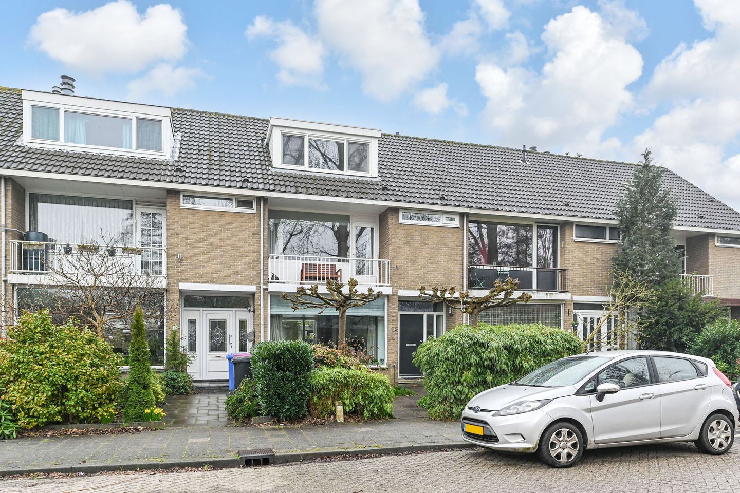 De fraai aangelegde voortuin van ongeveer 5 meter diep leidt naar de beschutte, verdiept gelegen entree van de woning.